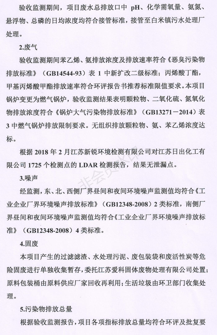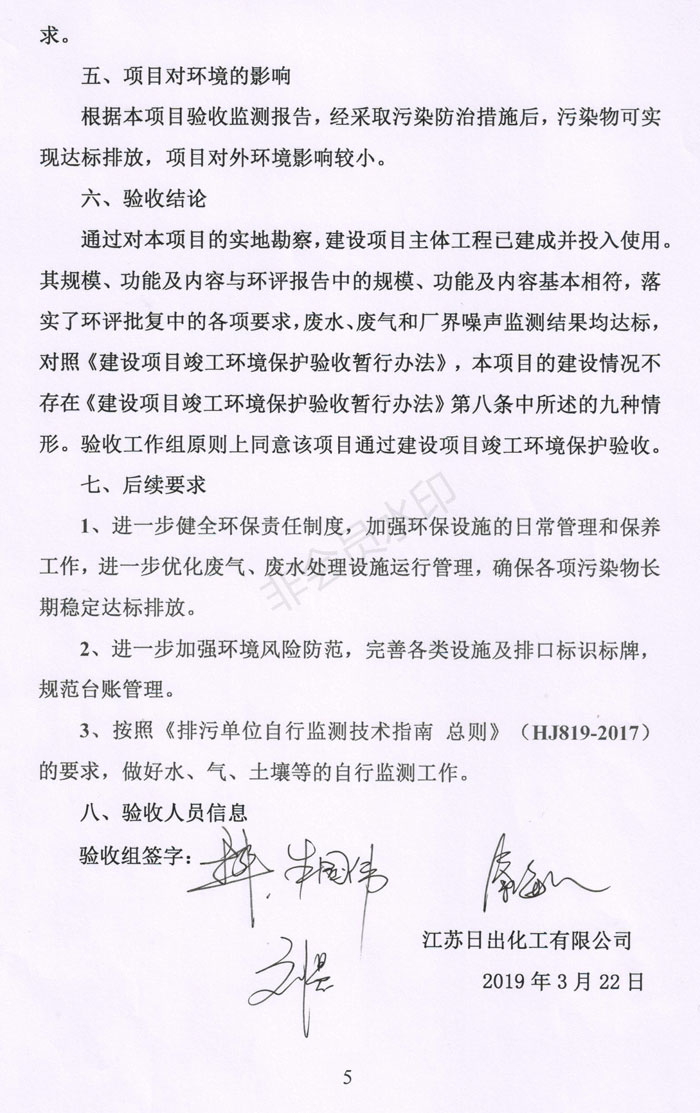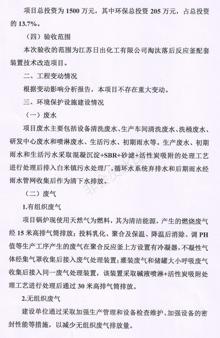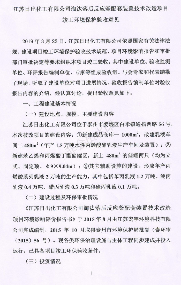 江蘇日出化工有限公司淘汰落后反應(yīng)釜配套裝置技術(shù)改造項(xiàng)目竣工環(huán)境保護(hù)驗(yàn)收意見(jiàn)